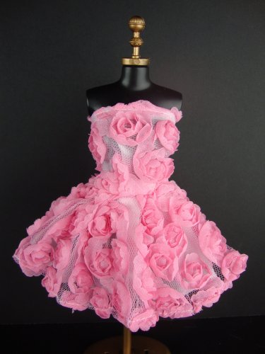 A Pink Mini Dress Covered in Roses It so Cute Also Avail in White, Blue and Green Made to Fit the Barbie Doll