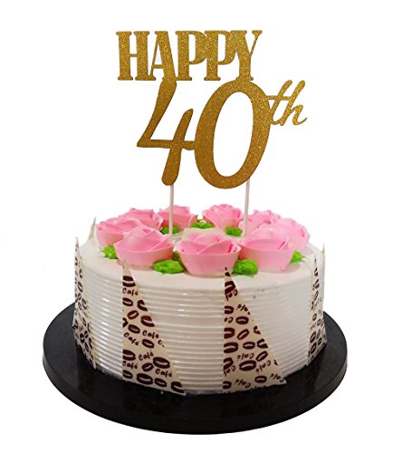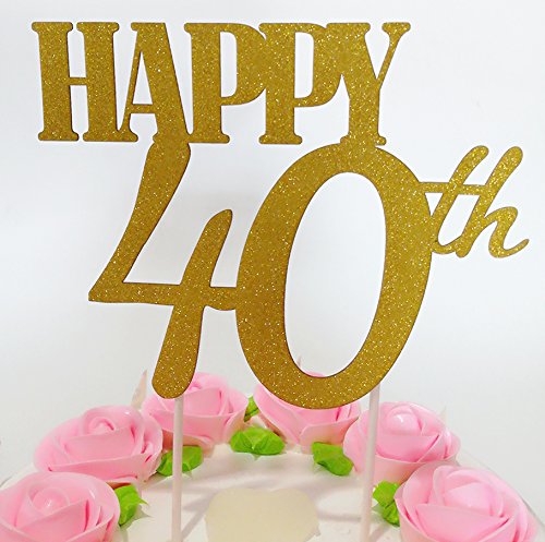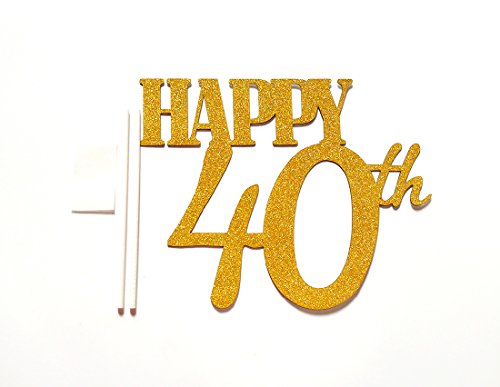 Gold Glitter "Happy 40th" Birthday Cake topper - Forever 40 Party Favors - 40th Birthday Party Decoration