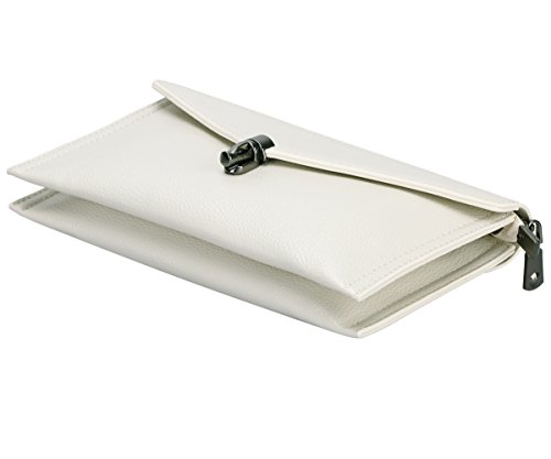 Structure: 2 main compartments and 1 slot under the metal zipper, 1 zip pocket & 1open pocket separately in the 2 compartments. 1 zipper pocket at back.