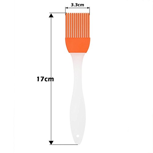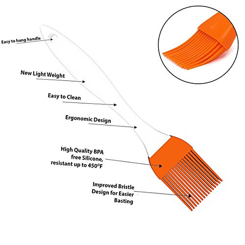 Made of 100% food grade silicone material. FDA approved BPA free. Unique one piece design makes cleaning so much easier and there is no fear of bacteria building up or particles stuck on the brush. Throw them in the sink or dishwasher and they are cleaned in seconds. The metal rod under the silicone handle supports a strong and flexible grip. These brushes are built to last!!! Safe to use in oven, microwave, frying pan, cooking pot and grill for temperature up to 40-250 degrees.