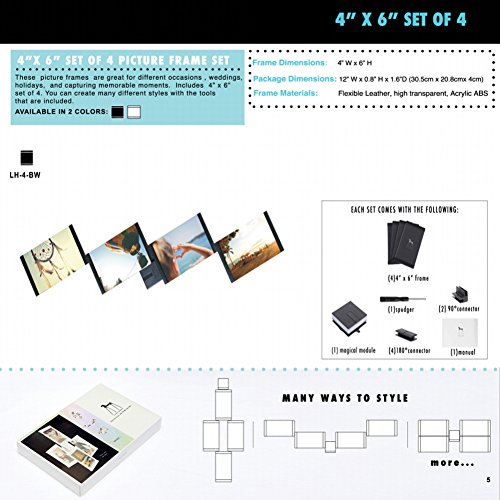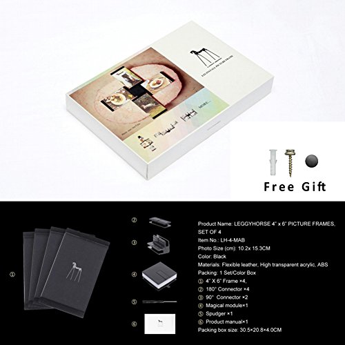 LEGGY HORSE Contemporary Picture Frames Transparent Acrylic Collage Photo Frames and Picture Frames with Magical Module(4x 6 Black-Set of 4)