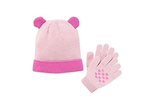 Girls Pink Heart 3d Ears Knit Hat Gloves Set