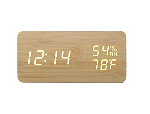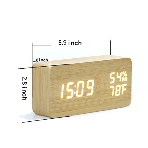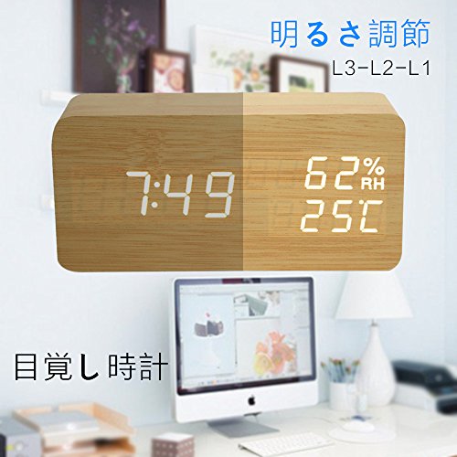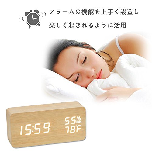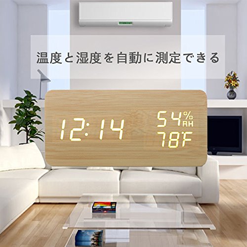 ✔【置き時計浮き出る文字】:白色LEDで大きく明るくデジタル表示しますので、どの角度からもくっきり見やすいです。一目見ただけで時間、日付、温度や湿度などすぐ分かる優れものです。木材をイメージしたナチュラルなデザインなのに先進的なデジタルの文字が浮かび上がるというこのギャップがなんとも最高です。