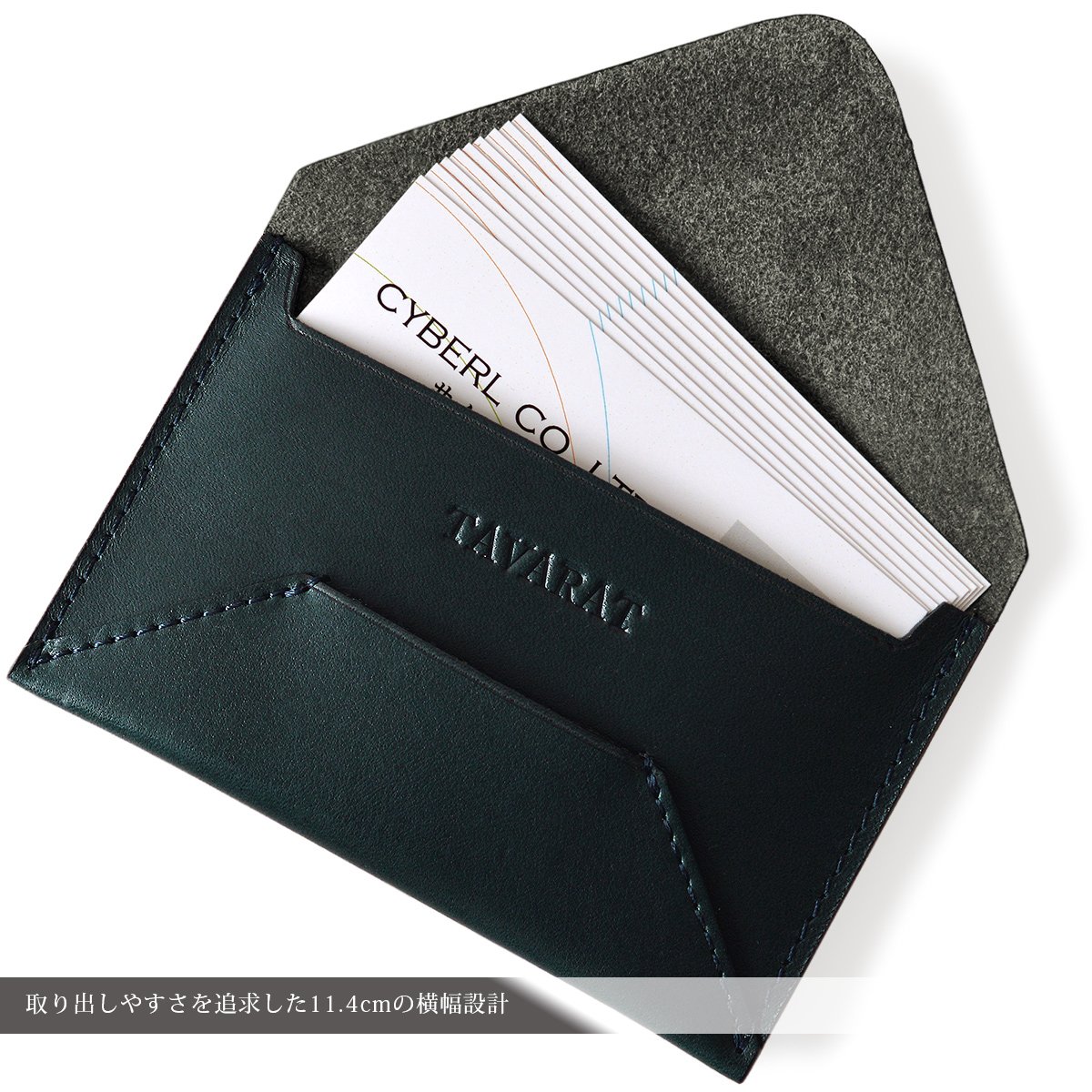 Even in this shape, we secured a horizontal width that makes it easy to retrieve business cards, yet we repeatedly trialed it so that it would be moderate size, and produced it with the optimum size.