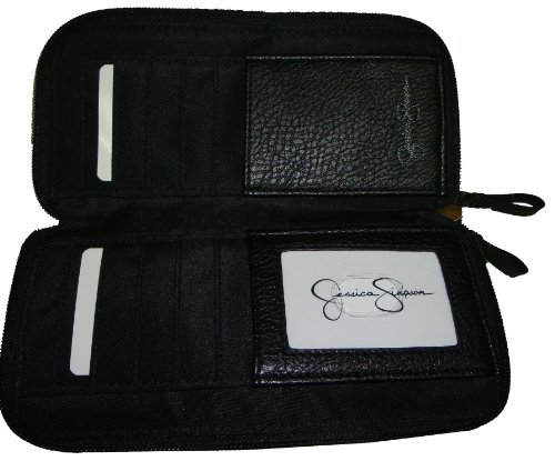 - Title : Jessica Simpson Women's Double Zip Around Wallet, Size 8"x 4" Opened 8", Color Black