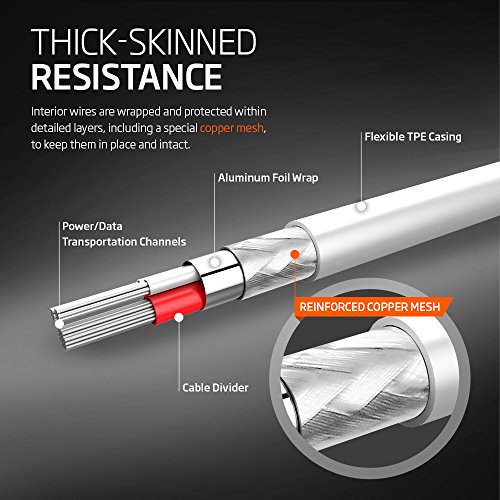 - Feature : Lightning cable with small connector head fits all cases / Lightning To Usb Cable Flexible strain relief tested to withstand excessive bending / iPhone 6S Cable Copper mesh interior keeps wires intact & in place / Lightining Cable Charger retains its shape for longer lasting usability / Compatible with iPhone 5/5S/5C, iPhone 6/6 Plus, iPod nano 7th generation, iPad Air, iPad mini 2/mini 3, and iPad 4th generation