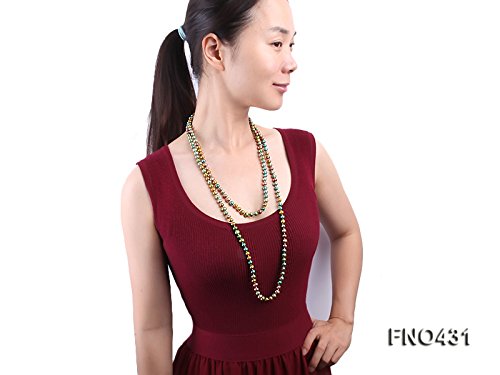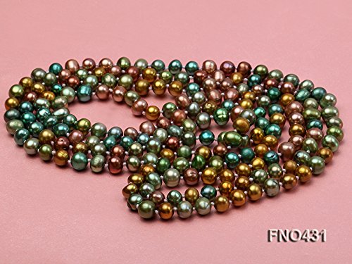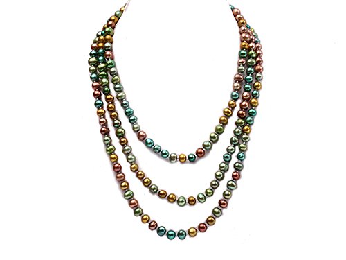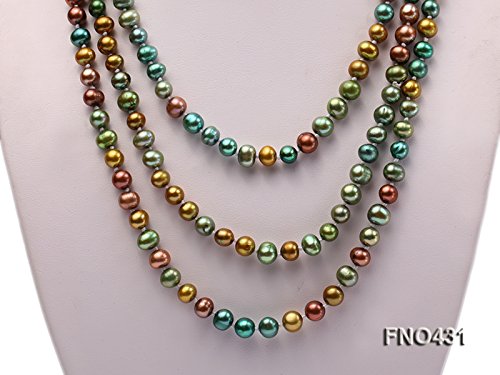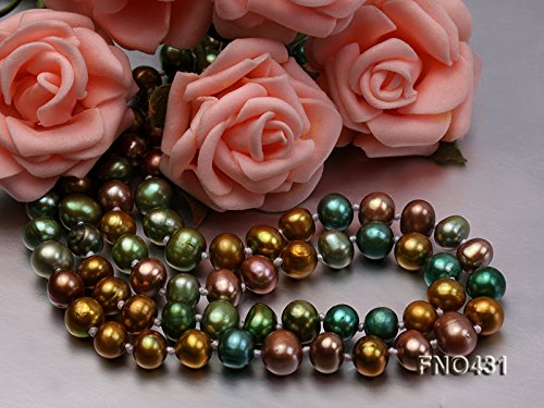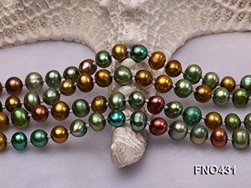 Description *This is a single strand freshwater cultured pearl necklace made with 7x8mm green, champagne and coffee off-round freshwater pearls.