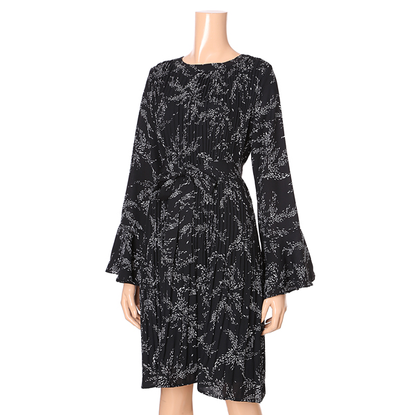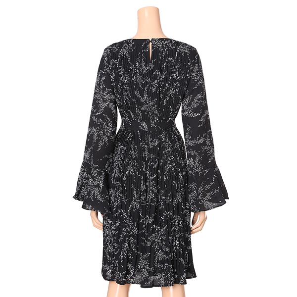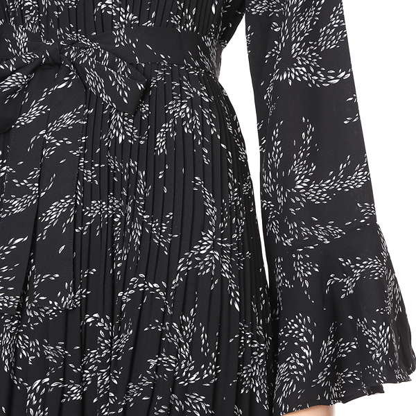 프린트 플리츠 소매 플레어 원피스 LI9OP454A