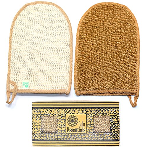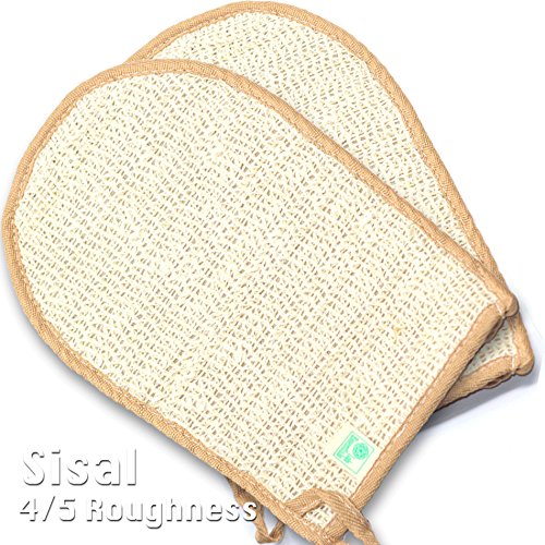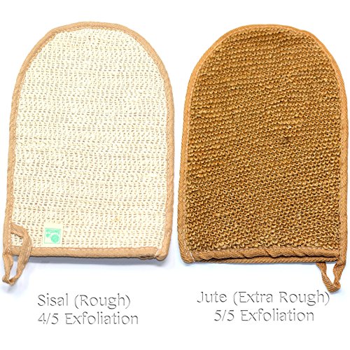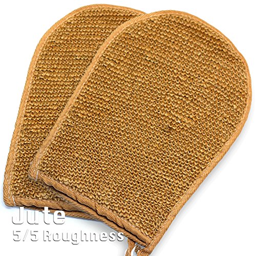 ✓ DOUBLE SIDED EXFOLIATING MITT - (2 Pack) Sisal side is rough, the Jute side is rougher