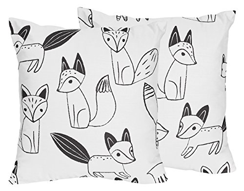 Sweet Jojo Designs 2-Piece Decorative Accent Throw Pillows for Black and White Fox Collection