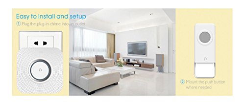 -. Feature : Easy Set Up: Broken doorbells are hard to replace. With Chimptron's energy-saving wireless doorbell, installation is simple. Our receiver and transmitter are pre-paired for installation. / 52 chimes (16 chord) to choose from and 4 steps volume control (25~110dB). / IP44 waterproof transmitter with soft silicon press button, it is able to withstand rain or shine. / With up to 1,000 ft operating range in open space, 350-500 ft audible range. / Easy to choose your change and select your favorite ringtone with forward and backward button.