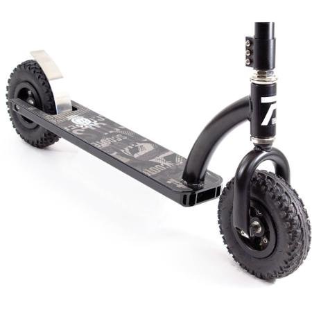 -. Feature : Reinforced extruded 6000 series heat-treated aluminum deck / Oversized steel 4-piece handlebars with 3-bolt clamp / Reinforced high tensile steel bars with BMX-style grips / 8" knobby tires with ABEC-5 bearings / Polished stainless steel foot brake Weight capacity: 180 lbs Assembly required