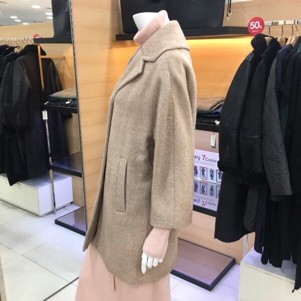 쉬즈미스 알파카혼방소재로 고급스러우며 베이직한 디자인의 내츄럴한 분위기를 연출하는 반코트예요