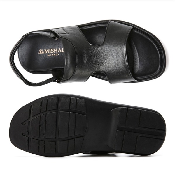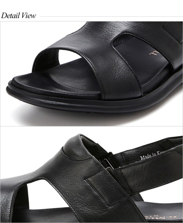 소재: 소가죽굽: 3.5cm 몰드창색상: 블랙블랙색상의 샌들입니다.여름에 신기 좋은 제품으로 너무 조잡하지않으면서도 단조롭지않은 디자인의 샌들입니다.여름에 반바지, 또 긴바지에도 잘 착화하실 수 있습니다.
