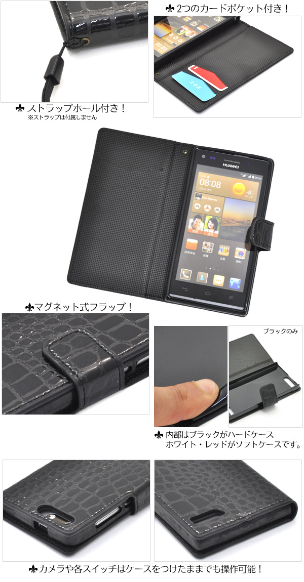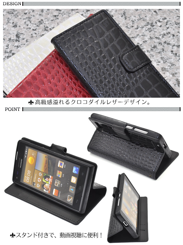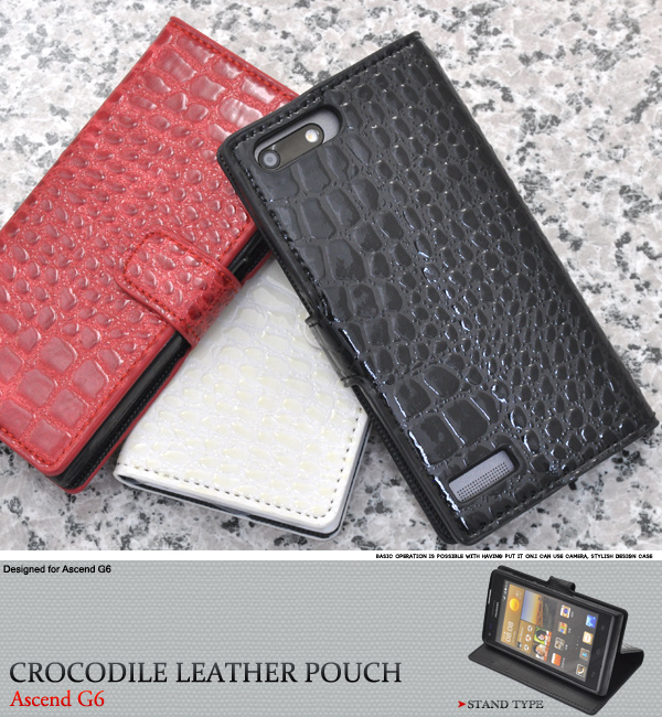 高級感溢れるクロコダイルレザーデザインのAscend G6用スタンドケースポーチ。