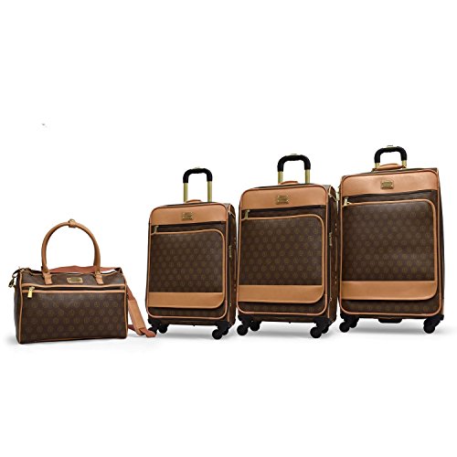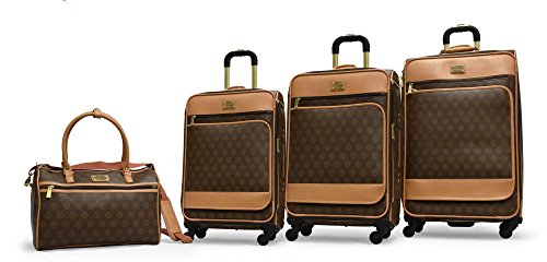 Product Description If you're someone who travels frequently and likes to travel in style, then this luggage set is probably a good choice for you. What's better than the Adrienne Vittadini Signature Expandable Spinner 4-Piece Set?? Nothing, that's what. In this set you not only get three great sizes for every sort of trip, but you also get a duffle bag with an add-a-bag feature to make carrying heavy bags a thing of the past making you count the days until your next getaway. Each case is ultra-lightweight and has 4 full spinner wheels, making it so easy to move around. The side handles are padded for extra comfort when you need to carry, and their durable PU fabric resists dirt, stains, and abrasions like a champ. Each piece of luggage in this set is also great when it comes to packing organization, thanks to zippered pockets on both the outside and the inside, as well as interior compression straps that hold everything in place. In addition, all of these bags expand up to 2 inches! to give you even more packing space, so it's almost like you get six different size options for the price of three Have it your way every time with the Signature Expandable Spinner 4-Piece luggage Set from Adrienne Vittadini. 0