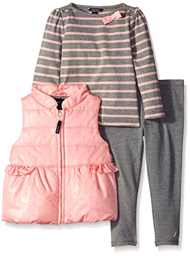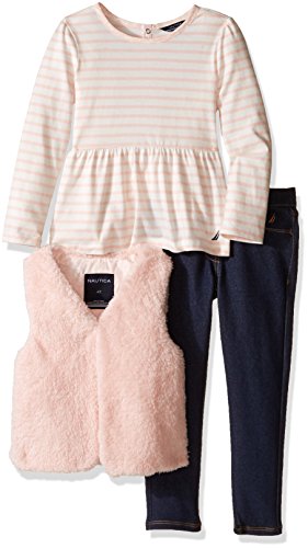 Nautica Little Girls' Toddler Teddy Faux Fur Vest, Shirt and Jegging Set, Pale Pink, 3T