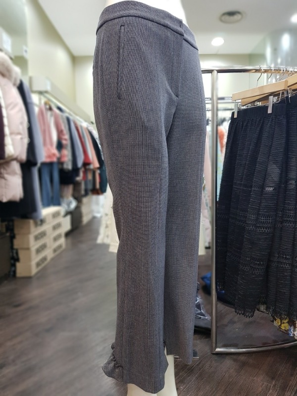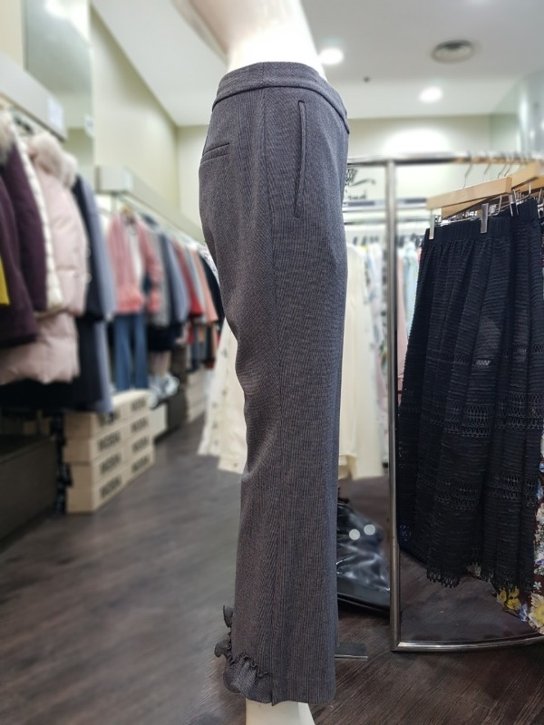 후면 하단의 프릴 디테일이 포인트인 스트레이트핏 팬츠로 깔끔하면서도 세련된 디자인으로 다양한 룩에 연출하기 좋습니다.