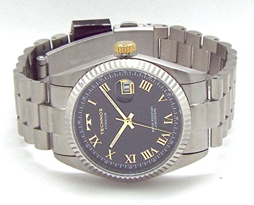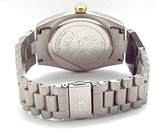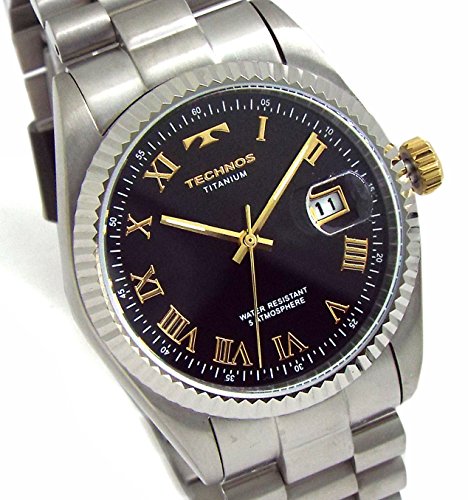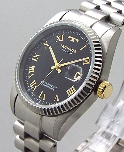 -. Feature : 腕時計 ブランド TECHNOS テクノス メンズモデル チタニウム 日付表示付き / フェイス直径36.5mm リューズ含み横幅39.3mm 厚み10.5mm 縦幅44.5mm 手首最大適応20.0cm / オールチタン製 重量約65.8g 5気圧防水 3ツ折れプッシュ式バックル 日本製クォーツムーブメント ゴールドメッキリューズ / 取り扱い説明書兼保証書 専用BOX付属 安心の1年保証付き