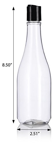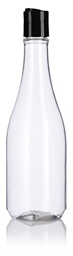 12 oz Clear PET (BPA Free) Plastic Refillable Rounded Bottle with Black Disc Cap (6 pack) + Labels