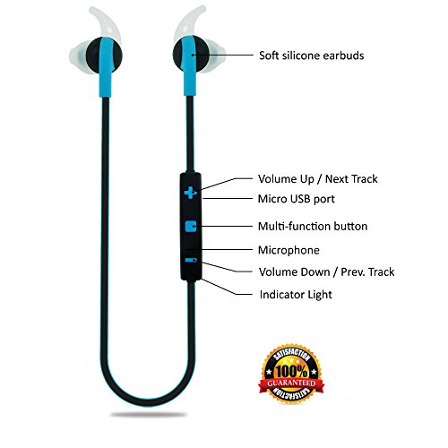 Bluetooth Headphones Wireless In-Ear Sweatproof Earbuds with Microphone for Phone Calls - Best Headset Earphones for Running Exercise Sport Gym on iPhone 6 6s Plus 5C 5S Android Samsung Galaxy S6 S5