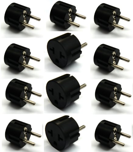 Tmvel Grounded Europe Adapter - USA to Europe Heavy Duty Adaptor Plug German Schuko Heavy Duty - 12 Pack