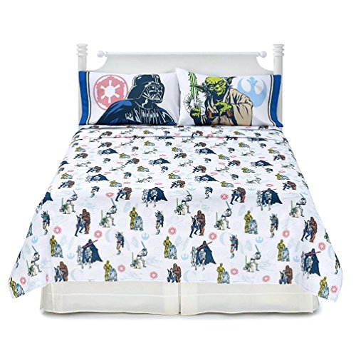 - Feature : Full comforter set includes: comforter , Flat sheet , Fitted sheet , Two 30" L x 20" W standard pillowcases / New Design with classic look! / Micofiber Fabric and Lightweight / Features Darth Vader, Storm Troopers, Boba fett, Tie Fighter, and X-Wings and more! / Linens Beyond FLashlight