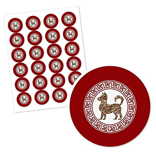Chinese New Year - 2018 Year of the Dog Party Circle Sticker Labels - 24 Count