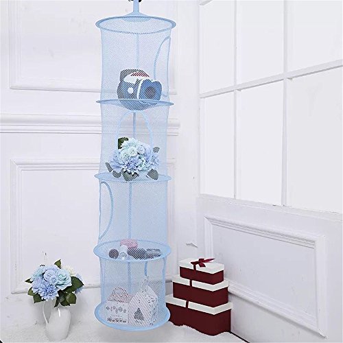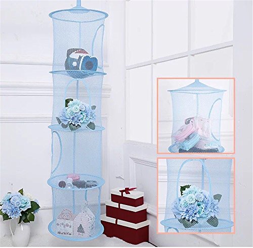 4 Shelves Hanging Mesh Drying Net Basket , Outdoor Kitchen Dish Food Hanging Drying Net , Foldable Storage Basket Drying Rack for Bra, Lingerie, Socks, Tights, Stockings, Underwear(Blue)