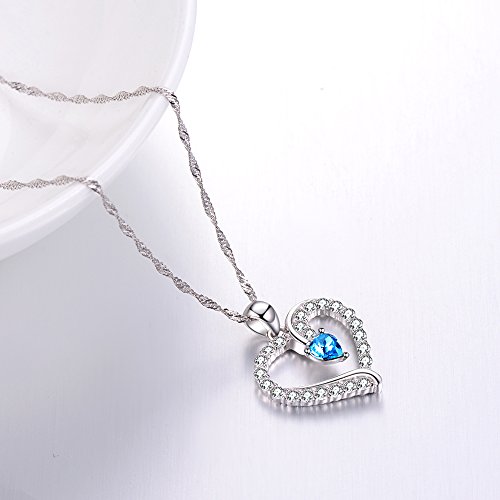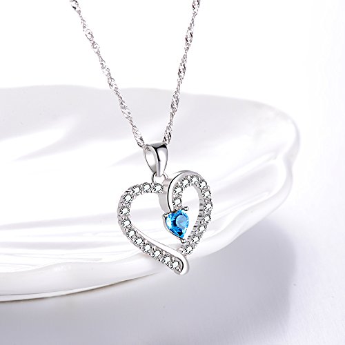 ♥FASHION DESIGN♥ Heart Necklace is a classic symbol of Love. This gorgeous 925 Sterling Silver heart Necklace has elegant heart shaped which symbolizes eternity of love. A sparkling heart-shaped Blue Topaz standing in the heart center. Show her how much she means to you with this stylish necklace: "You are so beautiful, shine like a diamond in my heart". Fashion design suit for any age women and girls.