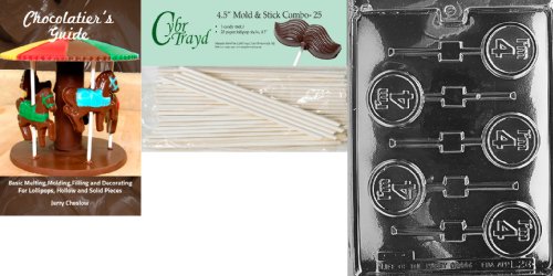 Cybrtrayd 'I'm 4 Lolly' Letters and Numbers Chocolate Candy Mold with 25 4.5-Inch Lollipop Sticks and Chocolatier's Guide