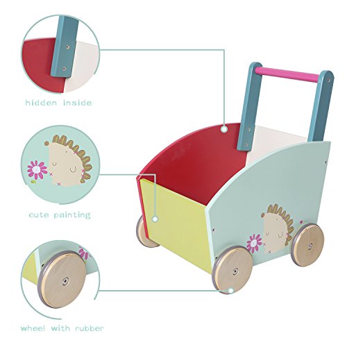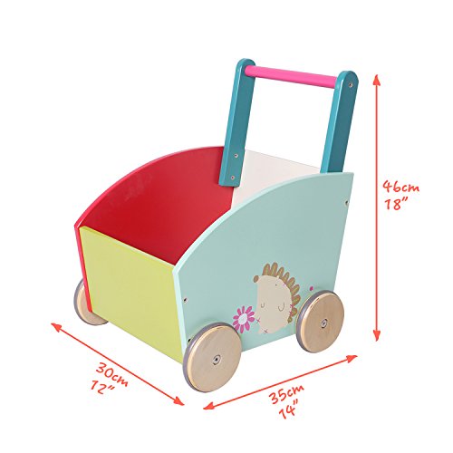(labebe)/Gear/Walkers/DIRECT FROM USA/Labebe Baby Walker with Wheel, Green Hedgehog Printed Wooden Push Toy, 2-in-1 Wooden Activity W...