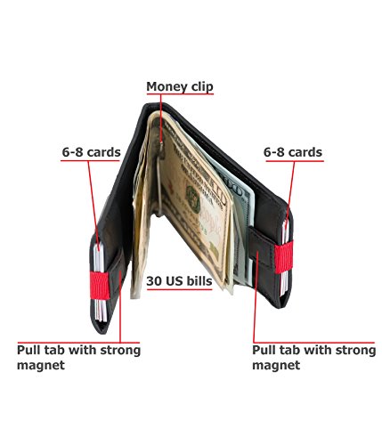 -. Feature : FUNCTIONALLY EFFECTIVE - With rigorously tested RFID Blocking technology, Sleek design, and 6pcs Powerful magnetic clip protection, this 100% Genuine Leather wallet can safely & conveniently hold up to 12 credit cards and 30 US bills / RFID SAFE LEATHER WALLET - This RFID Credit Card Protector Wallet For Men prevents the illegitimate skimming of credit cards & personal ID cards, and thus protects your personal and financial information from data theft / UNPARALLELED QUALITY - Our RFID Blocking Front Pocket Wallet For Men is made up of 100% GENUINE LEATHER which is soft & embossed to perfection for a luxurious feel. The premium material & elite craftsmanship are sure to win your heart! / ULTRA-SECURE & SLEEK DESIGN - Crafted to be Sleek & Stylish, this RFID protection Wallet or money clip wallet with 6pcs of strong magnets & perfectly sized slots can securely hold plenty of money & cards without becoming bulky! / SATISFACTION GUARANTEE - We also offer a satisfaction guarantee with this incredible RFID Card Holder, however, we are quite sure that you wouldn't find better protection for your money/cards anywhere else