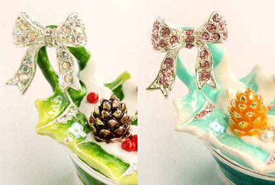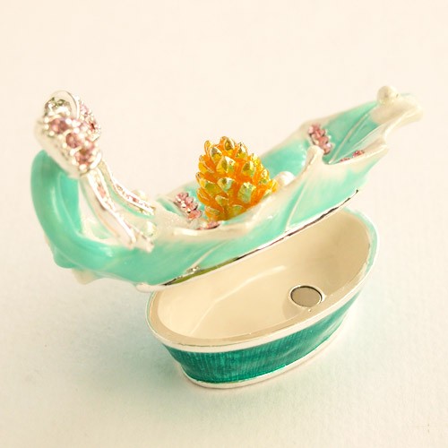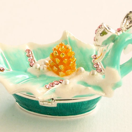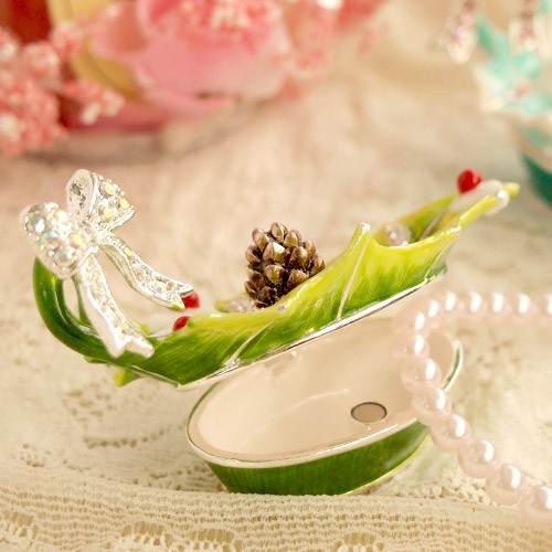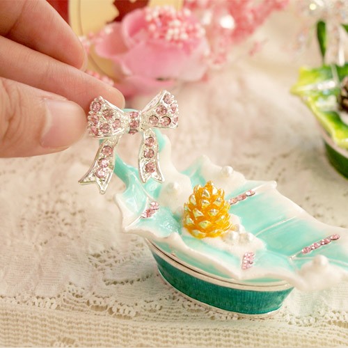 | ジュエリーボックスと言えば、指輪やピアス、ネックレスなどのアクセサリーを入れる引き出し型のケースを思い浮かべる方が多いかもしれません。 ピィアースのジュエリーボックスは、動物や花などをモチーフに作られ、合金製でずっしりとした重さがあります。また高品質のクリスタルガラスを贅沢に使用。まるでジュエリーボックスそのものが宝石のような、高級感溢れる仕上がりです。 小物入れとしても使えるように開閉口には磁石が取り付けてあり、アクセサリーなどなくしやすいアイテムの収納ができます。キラキラと美しく輝く宝石箱は、そのまま飾って楽しめるインテリア雑貨として多くの方に愛されています。 国内トップクラスのジュエリーボックスメーカーであるピィアースは、2004年ごろから本格的に宝石箱の製造を始め、現在のジュエリーボックスはなんと300種類以上。大規模展示会でもご好評いただいており、全国有名百貨店でも販売されています。 自社工場でひとつひとつ丁寧に手作りし、原型作成、研磨、加工、着色、小さなクリスタルガラスの取り付けなども全て手作業で行われるこだわりのハンドメイド品。完成後は厳しい検品の後、丁寧に梱包作業をしお客様にお届けしております。 ピィアース商品は、全国有名百貨店および全国有名宝石店チェーンにてお取り扱いいただいている高品質商品です。 ★自分へのご褒美に…コレクションして並べて飾ると、さらにかわいらしさUP! ★恋人へのプレゼント…中にアクセサリーを入れて、サプライズな贈り物として ★家族への感謝ギフト…お母さんや姉妹へ、日頃のありがとうの気持ちを込めて ★誕生日プレゼント…お友達の喜ぶ顔が見たいから、いつもと違うキラキラギフトを ★小さな女の子へ…まるでお姫様が使っているようなキラキラ宝石箱は女の子の憧れ! |