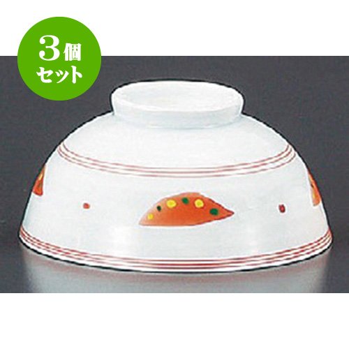 해다고 것 본점 3 개세트 반공기(자기)강화 (아카에)적화2 색점반공기 [113 x 53mm] 강화 일식 그릇 요정 여관 음식점 업무용