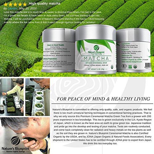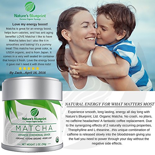 -. Feature : ?Vibrant. Emerald. Almost Neon Green color alone shows this matcha's quality. The Finely Stone-Ground, Silky, Baby Powder Texture is Consistent and Dissolves easily with "zero clumping" blending perfectly to a Rich Froth. Naturally Strong, yet velvety smooth flavor, with complex sweet notes and a barely detectable bitter finish common with pure, authentic matcha. An excellent choice for matcha & green tea lovers! / It's like drinking a piece of Nature. Organic, Pure Leaf, Energy has the perfect amount of slow release caffeine, instead of all at once! Feel Energetic enough to Raise and Chase the kids around with NO mid-day nap needed. Focus & Concentrate on important tasks with Mental Clarity & Alertness. Jump start Metabolism, Suppress your appetite, & send your performance at the gym "Through the Roof" to help with Weight Control. / ?Can easily Substitute your morning coffee routine it's that good. Perks you up without the crummy feeling after drinking too much coffee during the day. SurP.R.Ising and almost shocking how there is NO shakes or jitter effects. Leaves you Headache-Free. Worries about Bad Breath or Teeth Staining can be forgotten. / ?Tiny Container, but a WHOLE lot of good!! "Exactly what I'd Experienced in Japan" say many who try it. Compares to authentic Japanese Restaurants & Cafes. Even Baristas appreciate the teashop level quality! Awesome to be able to prepare instantly. Loved by daily users. If you aren't up to drinking this by itself, there are tons of recipes for Lattes and Frappuccinos. Handsome tin is Resealable, and Convenient to Store & Transport. Makes the Best Gift for the health-conscious in your life / ?**CHECK MONEY OFF PROMOTIONS BELOW** ORDER NOW with peace of mind, due to our FULL Money Back Guarantee :) Acknowledged by Dr. OZ, Dr. Axe, David Wolfe, Dr. Weil, and The Matcha Miracle Book