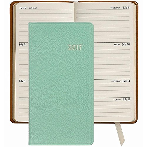 -. Title : 2017 Robins Egg Blue 6in Pocket Datebook Diary in Fine Goatskin Leather by Graphic ImageTM - 3-1/8x6