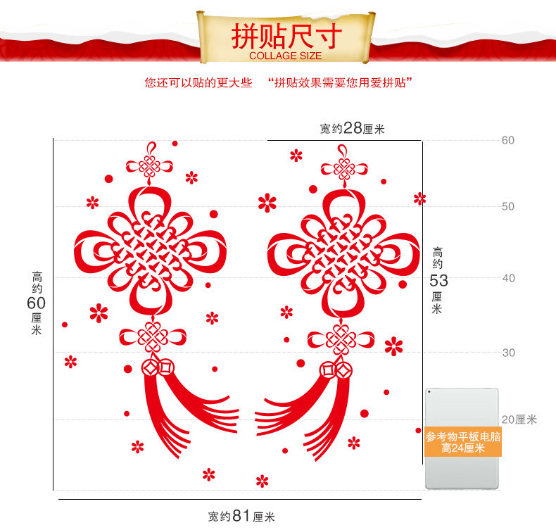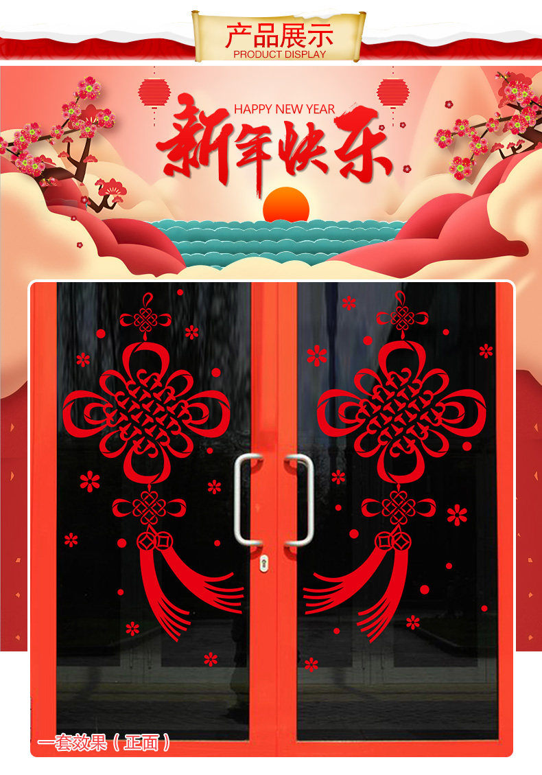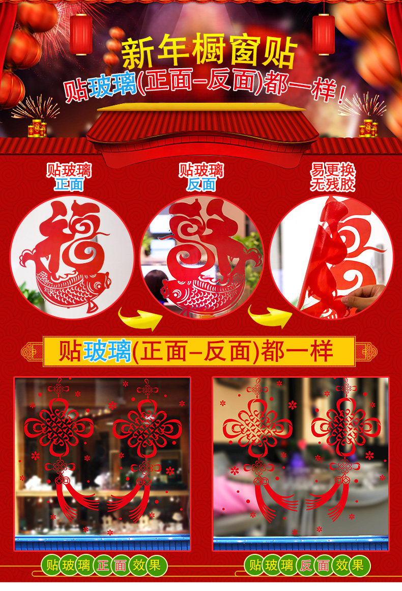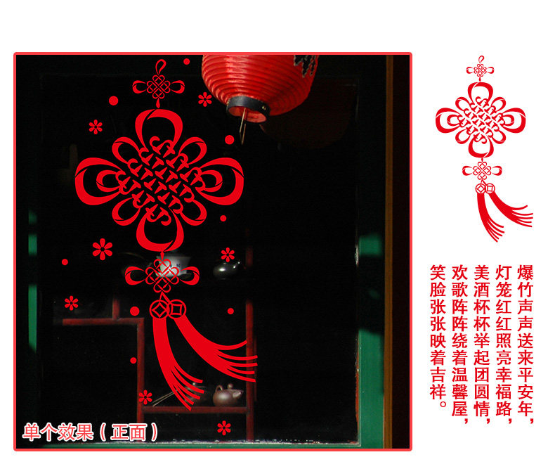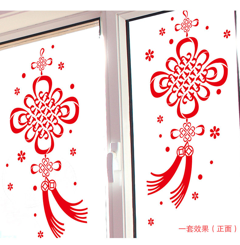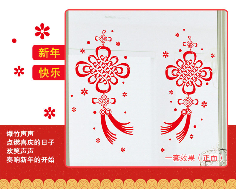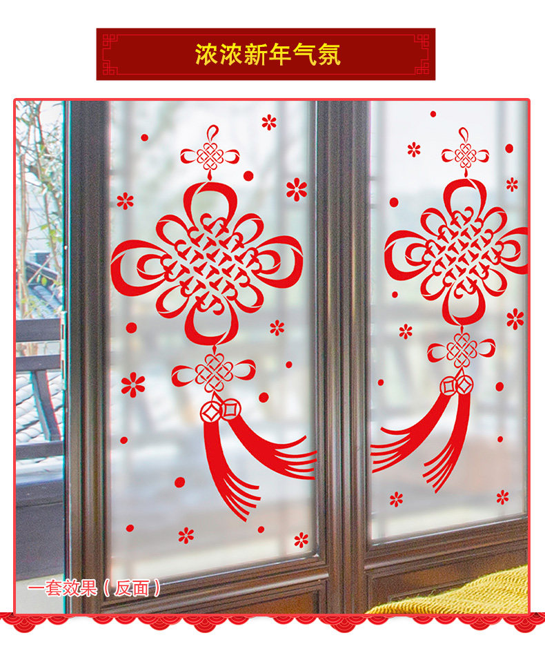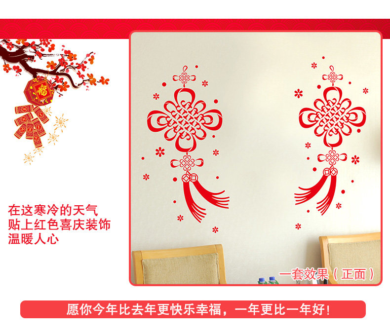 橱窗玻璃贴可移除贴画春节喜庆过年装饰年货新年福字中国结墙贴纸
