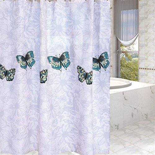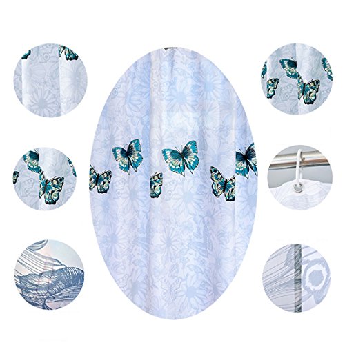 BBolive Bath Fabric Shower Curtain Liner Set with 12 Plastic Hooks - Thicken Polyester Liner with Rust Proof Metal Grommets - Waterproof 72 x 72 Inch - Butterfly
