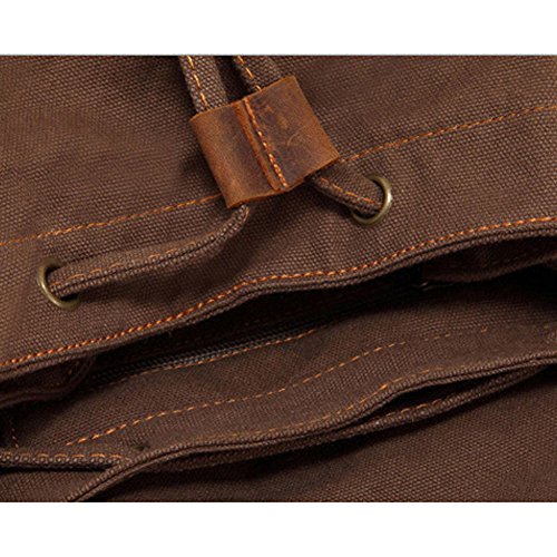 -. Feature : Cortical Feature --- Vintage style canvas backpack. Made of high quality sturdy cotton canvas with premium bronze-colored metal and first layer cowhide decorative accessories. / Structure --- Two side pockets, one front pocket, one large main pocket with one zipped pocket and tablet compartment inside. The large capacity design can hold a lot of stuff for school and daily necessities such as iPad, camera, calculator, pens and pencils, books, cell phone, cards, MP3 player, etc. / Characteristic --- Adjustable shoulder strap for easy and comfortable carrying. And the exquisite draw string design which make the bag looks more elegant and fashionable. / Utility --- Great rucksack for hiking, camping, traveling; It is also a perfect school bag for men, women, teens, girls, boys, college students. High Density Canvas Backpack/ Rucksack/ Schoolbag. You deserve to have! / Overall Size --- 28cm (L) x 16cm (W) x 42cm (H) / 11" x 6.2" x 16.5". Note: Product image 100% in-kind shooting. It is normal that the color cause a little different due to production batch or ambient light and different display resolutions.