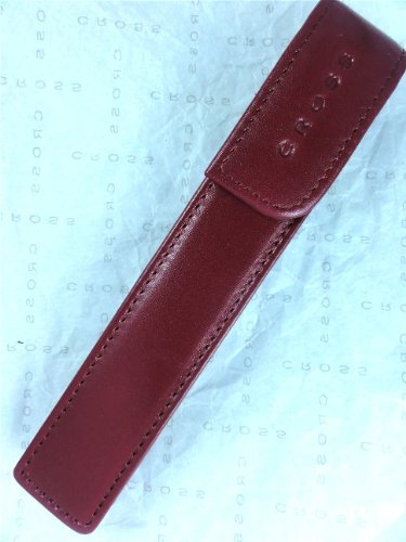 Cross Full Grain Italian Leather, Signature Perforated Detailing, Single Magnetic Flip Top Pen Pouch, Ruby Red and Can Accommodate any Cross Pen