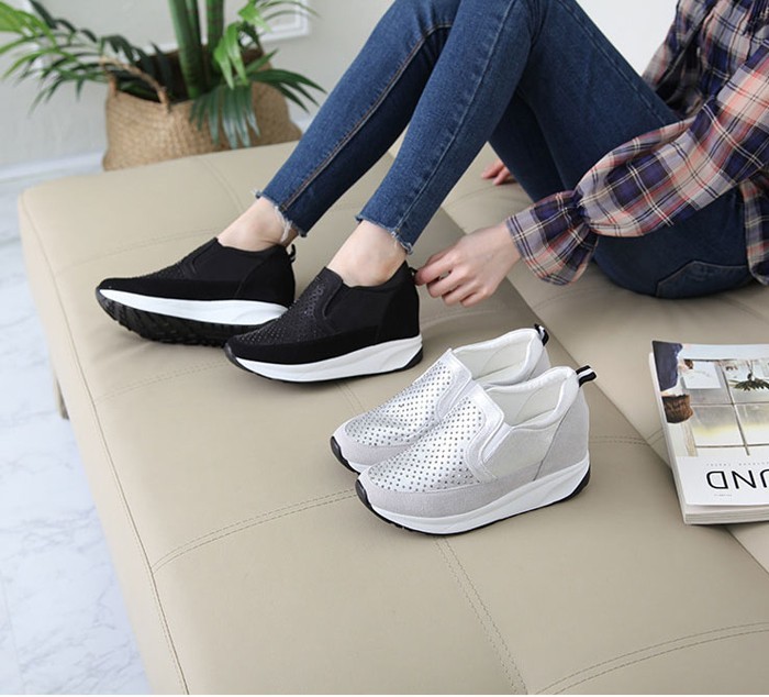 商品名:スリッポン レディース スニーカー メッシュ 厚底 2018 夏 ファッション 靴 婦人靴