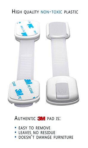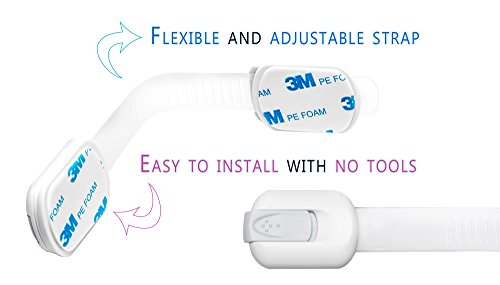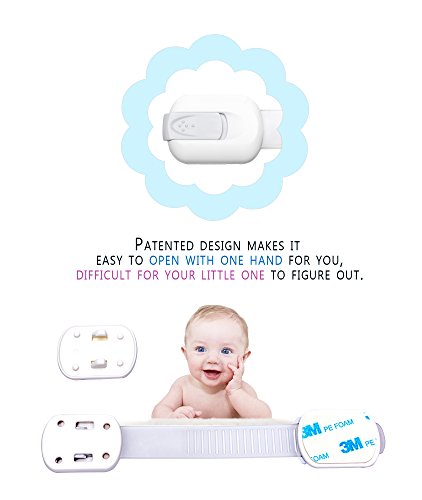 - Feature : ✔ SPECIAL HOLIDAYS PRICE ✔ REUSABLE: Move Them Where You Need Them: Extra pads are included so you can reuse your locks time and again. / ✔ LIFETIME 100% SATISFACTION GUARANTEE: If your child safety locks fail at any point, simply contact us directly for a free replacement. / ✔ STYLISH and SLIM: These non-bulky White and Silver safety locks look particularly great on stainless steel and white surfaces. Beautiful box makes it a great Baby Shower gift. / ✔ UNIVERSAL FIT & ADJUSTABLE LENGTH: Flexible strap and adhesive back mean these locks work equally well on flat surfaces and around corners. Great for doors, windows, appliances and more. Holds securely to protect baby and releases easily without marring walls or surfaces. / ✔ ONE-HAND OPERATION: The sturdy, toddler-proof design won't frustrate the grownups in the house. You can easily latch or open your locks with just one hand.