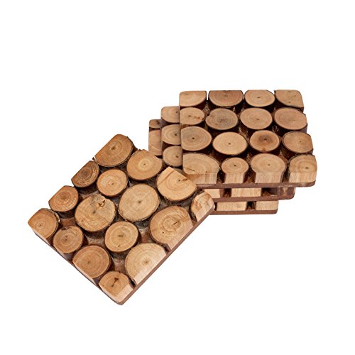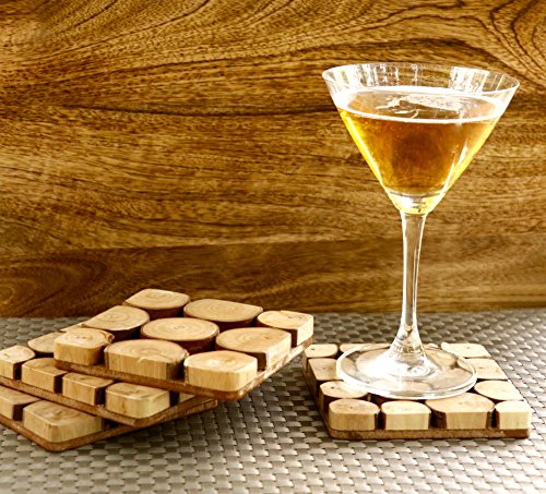 GoCraft Handmade Wood Slice Coasters for your Drinks, Beverages & Wine/ Bar Glasses (Set of 4)