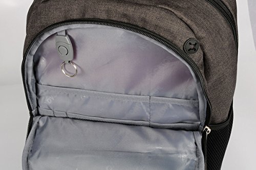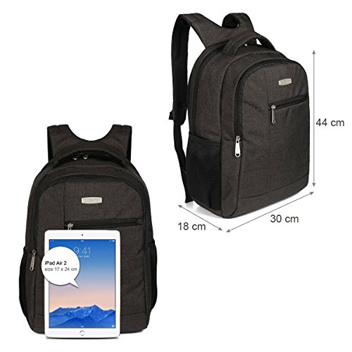 -. Feature : Material:High Quality 600D Polyester with SBS Zipper / Size:33*45*18CM/ 12.9*17.7*7 Inch ;Capacity: 20L; Fit for 15.6 Inch Laptop / 1*Main zipper compartment with a 14.4-15.6" laptop sleeve,Ipad sleeve and a mesh pocket.,1 large front zipper pocket with 2*inner pouch and a Keychain,1* front zipper pocket,and the backpack also has 2 side pockets for bottles/umbrella. / Lined laptop sleeve holds up to 14-15.6" laptop and A4 magazines.Adjustable padded shoulder straps for carrying comfort.The system of reliefing back pressure. / With the all important front pocket, you have a good place for keys, phone, glasses or even passport when traveling.There is also a hook for a key chain with a quick release. All zippers have a large metal tab that has the brand name engraved. Suitable for all office, college school, business, and travel.