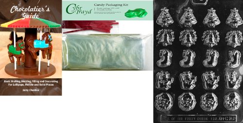 Cybrtrayd B.S. Assorted X-Mas Chocolate Mold with Chocolatier's Bundle of 25 Cello Bags, 25 Red Twist Ties and Chocolatier's Guide
