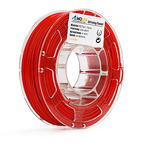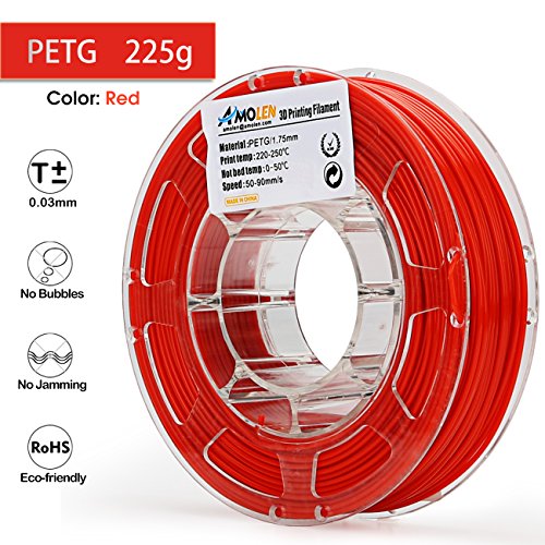 AMOLEN 3D Printer Filament, Red 1.75mm PETG Filament for 3D Printing +/- 0.03 mm, 225g(0.5LBS) Spool