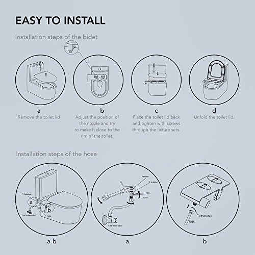 Additional Wrench for Easy Installation: a wrench is included in the package for bidet installation which will help to assemble all the parts within 10 minutes, requiring no plumping skills