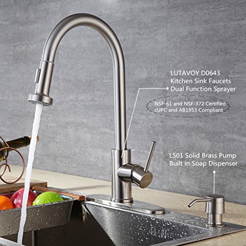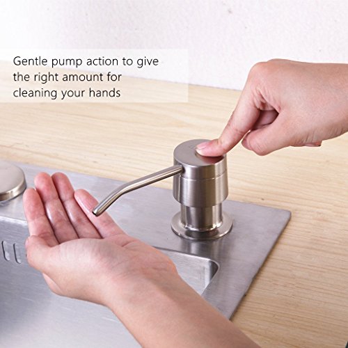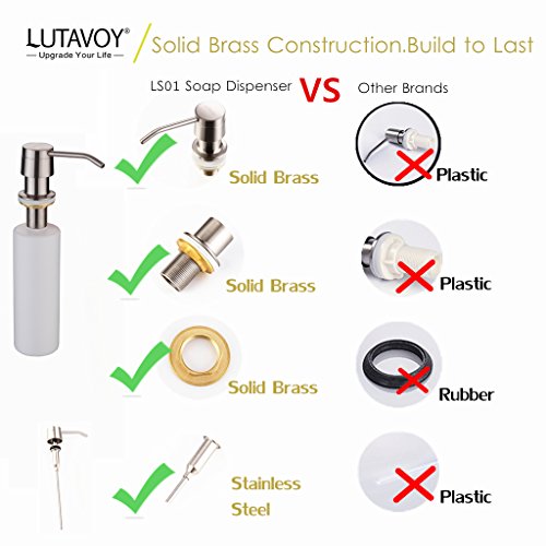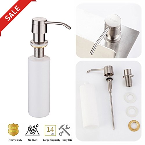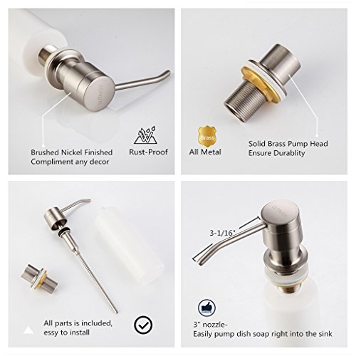 - #1 Best Sink Soap Dispenser— Made of lead free and durable SOLID BRASS with brushed nickel finishing, stunning and NO RUST, acid-resistance,corrosion-resistance durable and sturdy,Which coordinate with your kitchen decor.Fit any kitchen sink hole size(Φ1.18 - 1.37 inch)