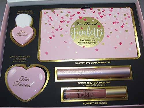 Life's a party, so celebrate it with style. Get playful with 12 matte and shimmer eye shadows, then top it off with a long-wearing blush, moisturizing mascara and a pop of pretty lip gloss. Discover all the products you crave to make your look fun, flirtatious and eye-catching. What You Get: .36 oz. Funfetti Eye Shadow Palette .21 oz. Love Flush Blush - Funfetti (brightening peachy pink shade) .10 fl. oz. Funfetti Lip Gloss - Mocha Freeze (bronze) .27 fl. oz. Better Than Sex Mascara - Black Heart Flatbuki BrushFeature
